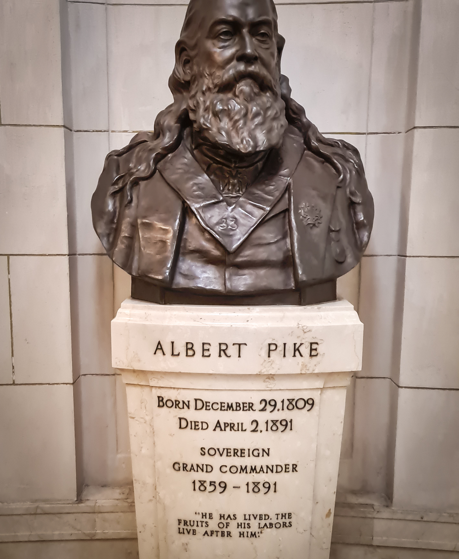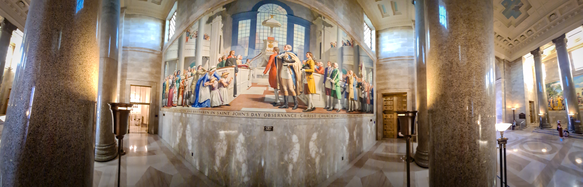 Das „House of the Temple“ in Washington, D.C. ist ein beindruckendes Bauwerk, das als Sitz des Alten und Angenommenen Schottischen Ritus dient. Das Gebäude, das 1915 fertiggestellt wurde, ist ein Meisterwerk des renommierten Architekten John Russell Pope, der auch das Jefferson Memorial und die National Gallery of Art entworfen hat. Mit seinem neoklassizistischen Stil, inspiriert von antiken Tempelbauten wie dem Mausoleum von Halikarnassos, ragt das House of the Temple als architektonisches Wahrzeichen in Washington hervor. Das House of the Temple ist nicht nur ein Zentrum für Freimaurer, sondern auch ein bedeutendes kulturelles und historisches Wahrzeichen in Washington, D.C. Es repräsentiert die lange Geschichte und die Traditionen der Freimaurerei in den Vereinigten Staaten und trägt durch seine musealen Angebote und Führungen zur Bildung und zum kulturellen Verständnis der Öffentlichkeit bei. Jährlich zieht das Gebäude zahlreiche Besucher an, die sich für Architektur, Geschichte und Freimaurerei interessieren. Ein Teil des Gebäudes ist als Museum der Öffentlichkeit zugänglich und bietet Einblicke in die Geschichte und die kulturelle Bedeutung der Freimaurerei. So findet sich in der Bibliothek, die der Öffentlichkeit zugänglich ist, die Vereidigungsbibel von George Washington. Aber auch viele weitere Exponate berühmter Persönlichkeiten und Freimaurer wie dem Astronauten Walter M. Schirra, der eine kleine masonische Flagge an Bord von Apollo 7 auf seine Reise mitnahm. Eines meiner persönlichen Lieblings-Exponate ist ein „masonischer Toaster“, der einem den Frühstücks-Toast mit freimaurerischen Symbolen verziert. Besucher können Führungen unternehmen und dabei die prächtige Innenausstattung bewundern, die reich an freimaurerischen Symbolen und Kunstwerken ist. Der Haupttempelraum beeindruckt mit hohen Decken, massiven Säulen und aufwendigen Verzierungen und wird für Rituale genutzt. Daneben gibt es zahlreiche andere Räume, darunter Sitzungssäle, Bibliotheksräume und Büros, die alle sorgfältig dekoriert sind.