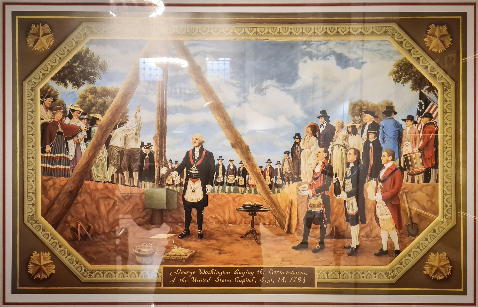 Wer sich mit der amerikanischen Hauptstadt beschäftigt, stößt früher oder später auf Geschichten über freimaurerische Symbole, die im Stadtbild von Washington D.C. versteckt sein sollen. Da werden Winkel, Zirkel und Pentagramme im Straßenbild der Stadt gefunden und als freimaurerische Stadtplanung gedeutet. Auch wenn viele dieser vermeintlichen Enthüllungen dem Reich der Mythen und Märchen entsprungen sein mögen, ist es die maurerische Vergangenheit und auch Gegenwart der Stadt sicherlich nicht. Die Stadt entstand ab 1791 nach Plänen des französischen Architekten Pierre Charles L‘Efant, der seinerseits Freimaurer war. Den Auftrag erhielt er von niemand geringerem als George Washington, selbst ein berühmter Freimaurer, der sich als solcher auch oft in der Öffentlichkeit zeigte. Bei zahlreichen Gelegenheiten hat der erste Präsident der Vereinigten Staaten seine maurerischen Werkzeuge gezeigt, wie zum Beispiel bei der Grundsteinlegung des Kapitols.